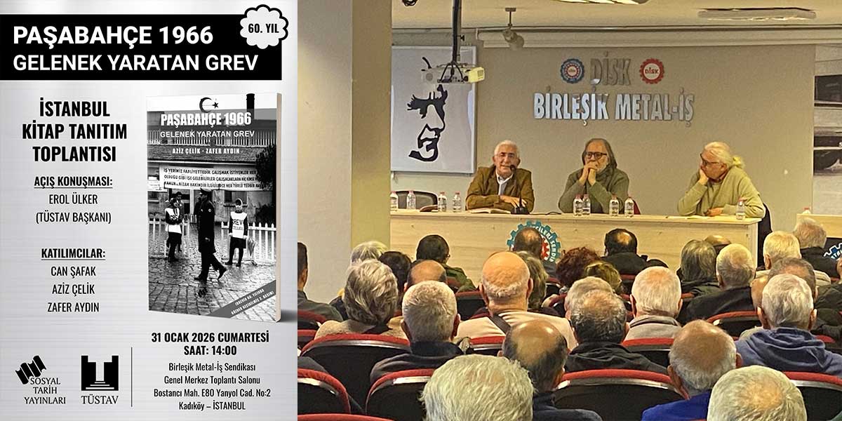 Vakfımız bünyesinde yer alan Sosyal Tarih Yayınları arasından çıkan, Aziz Çelik ve Zafer Aydın tarafından kaleme alınan “Paşabahçe 1966/ Gelenek Yaratan Grev” kitabının tanıtım toplantısı 31 Ocak 2026 tarihinde İstanbul’da yapıldı.